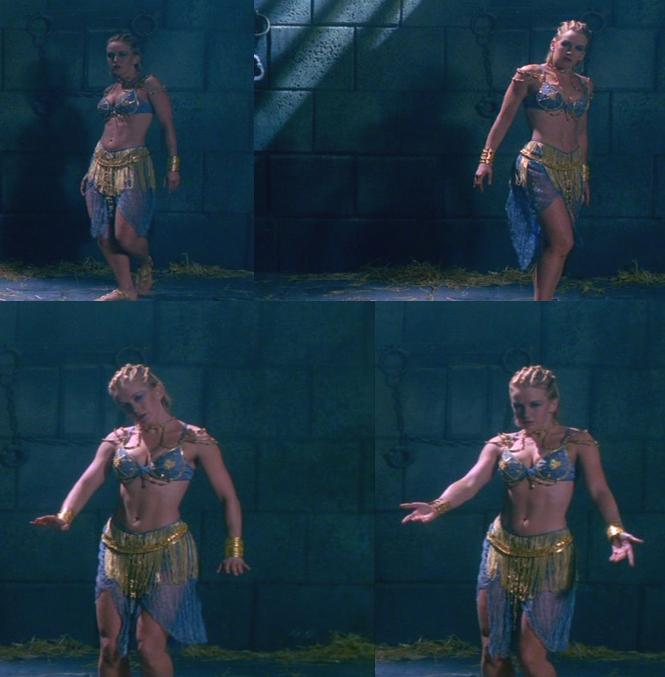 Nesse momento, Xena pensa em Gabrielle com tanta força que consegue novamente visualizá-la. E notem: fazendo uma dança sensual.
