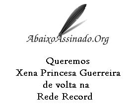 Criamos um abaixo assinado virtual para enviar à Rede Record de Televisão, afim de que a emissora volte a exibir Xena Princesa Guerreira.