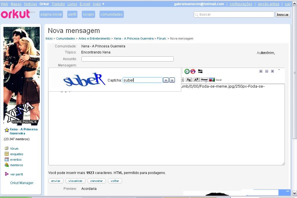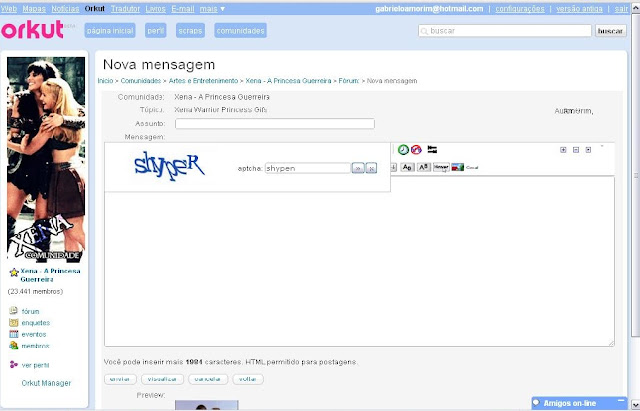 Em 2004 uma rede social surgiu para que pudéssemos conhecer pessoas e fazer amigos, seu alvo era os EUA e ganhou um nome turco do engenheiro chefe do projeto: Orkut. O Orkut teve seu auge no Brasil em 2006, era assunto na escola pedir scraps, ter fãs, mencionar comunidades com nomes criativos... Ah, as comunidades! Foi o que sempre me chamou atenção no Orkut: Falar de coisas que eu curto, que só eu curto e meus amigos não. Xena! As poucas comunidades que sobreviveram e a maior parte dos xenites que conheço hoje através da internet eu conheci entre 2010 e 2012, anos antes disso eu só participava de tópicos das comunidades menores cheias de xenite anônimo.