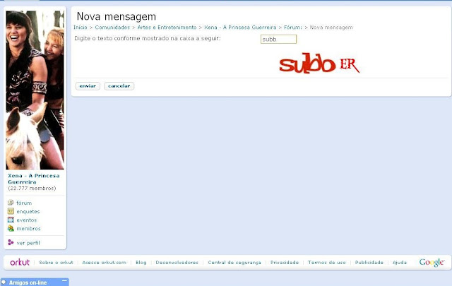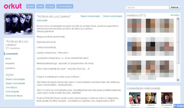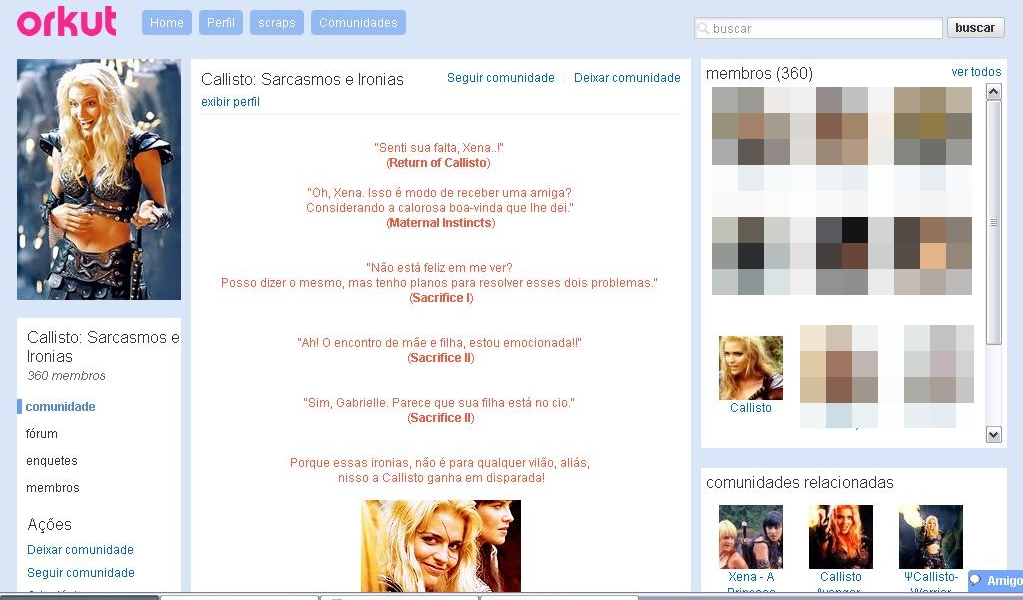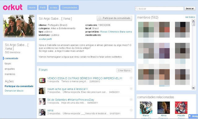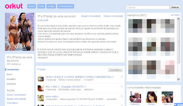 Essa foi a primeira comunidade de Xena que entrei, fico surpreso em entrar no Orkut hoje em dia e ver que ela ainda existe. Uma vez a série mudou de horário, e se não fosse por essa comunidade eu teria perdido Xena naquele dia.