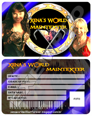 Infelizmente o Xena's World Maintexter não tem condições para confeccionar e enviar pelos correios uma carteirinha para cada um dos xenites, por isso estou disponibilizando-as de forma virtual.