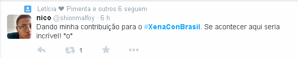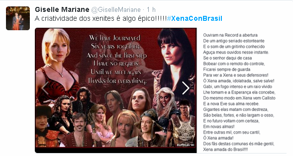 Essa breve conversa deu início a uma comoção de Xenites e fãs da série pela luta em prol de uma Convenção de Xena aqui no Brasil: